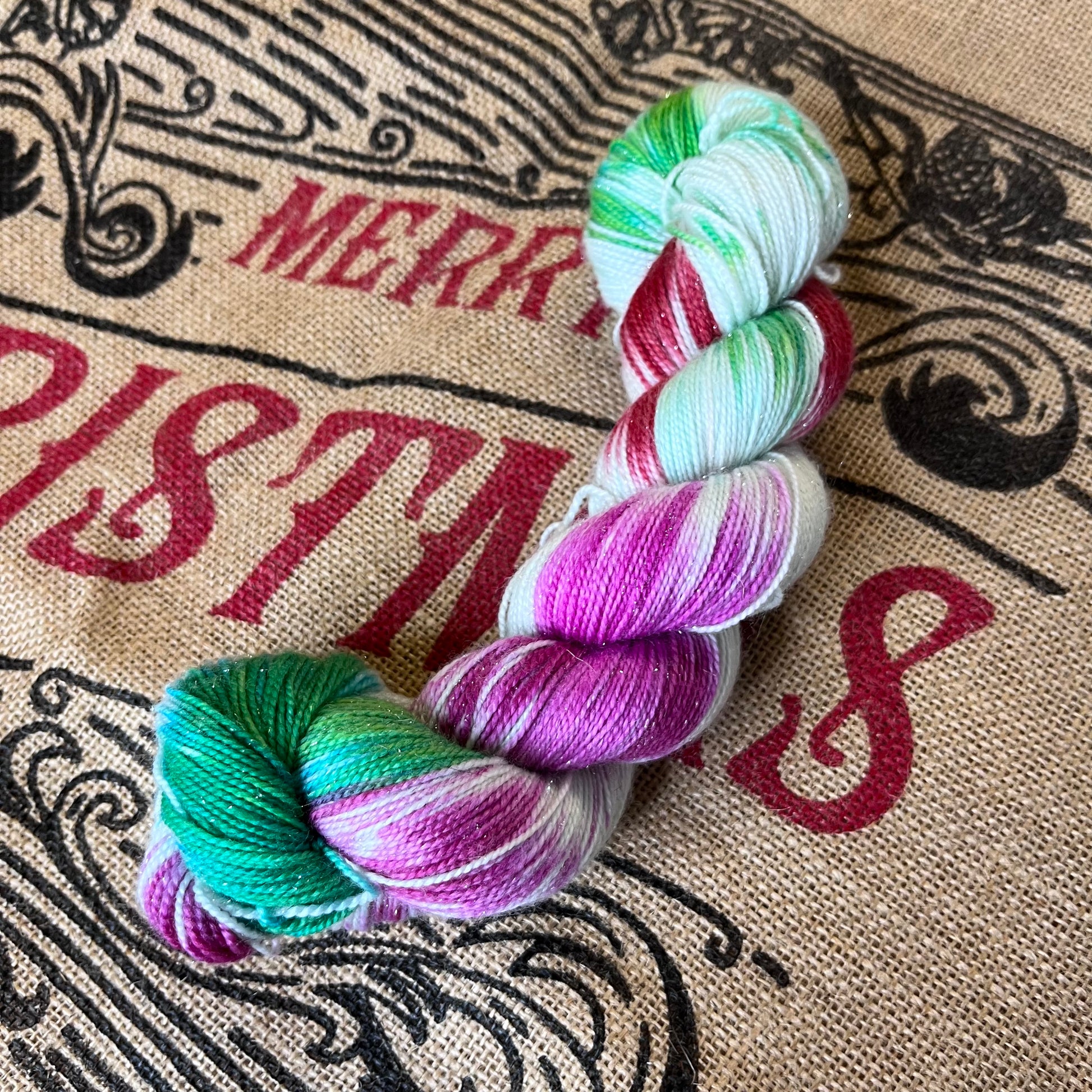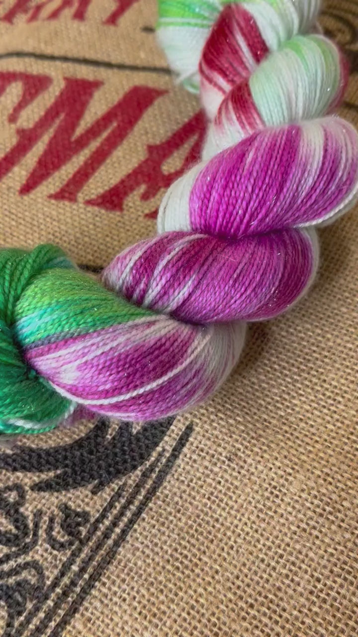Candy Cane Forest Sparkle Sock Yarn